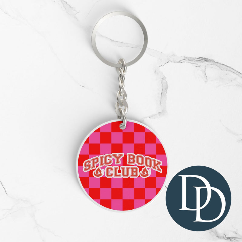 Spicy Book Club Checkered *Round Keychain UV DTF Decal*