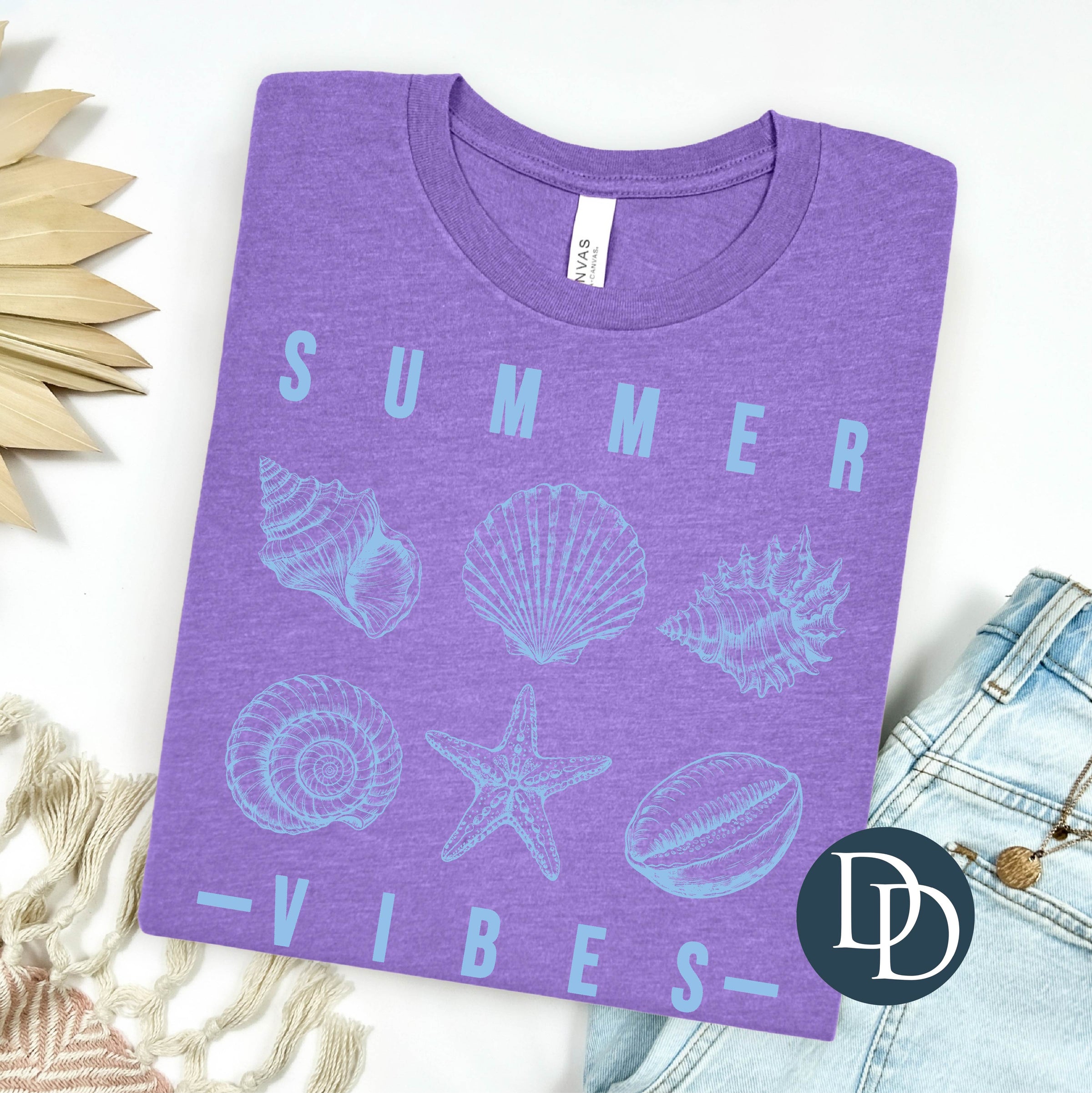 Summer Vibes Sea Shells Collage (Light Blue Ink) *Screen Print Transfer*