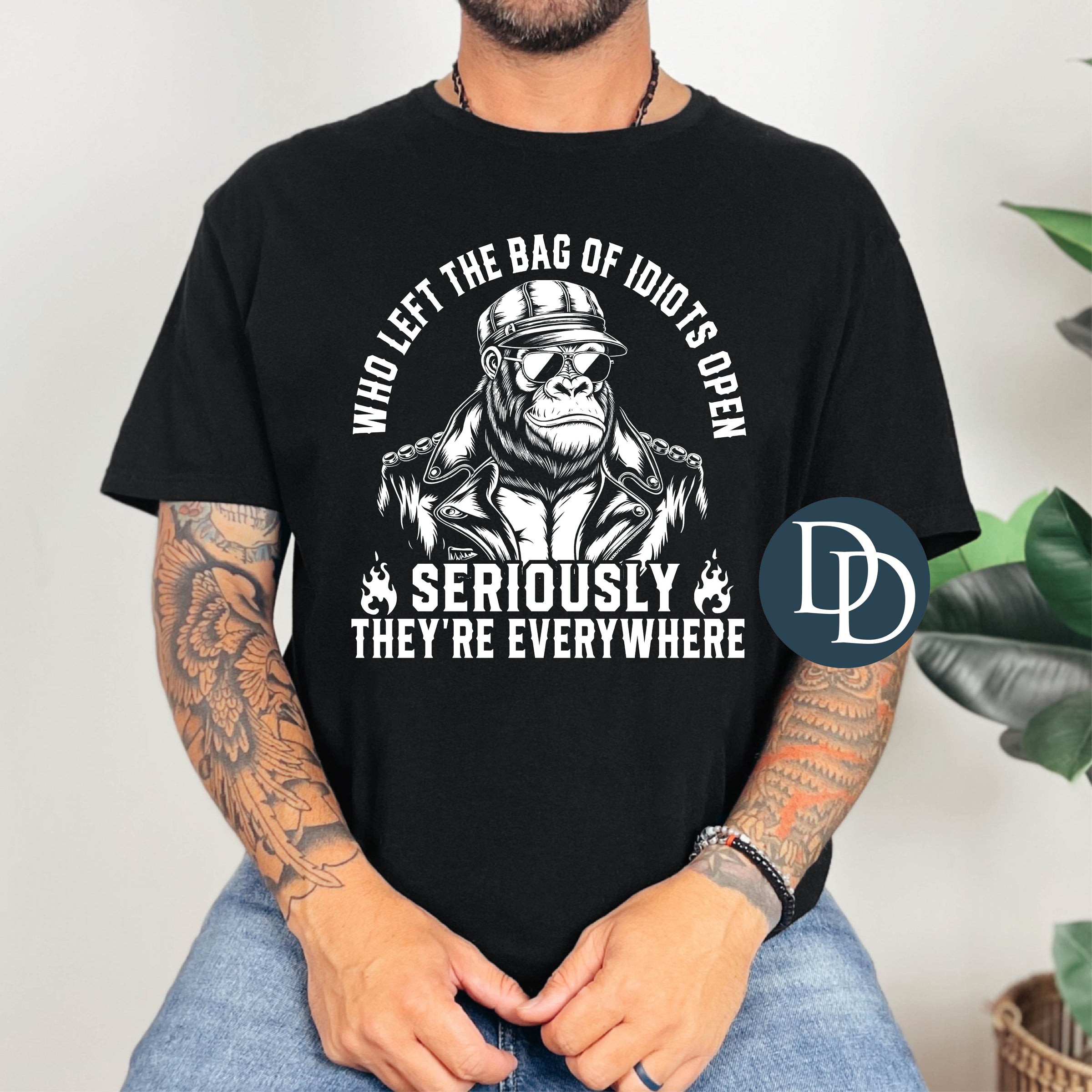 Who Left The Bag Of Idiots Open (White Ink) *Screen Print Transfer*